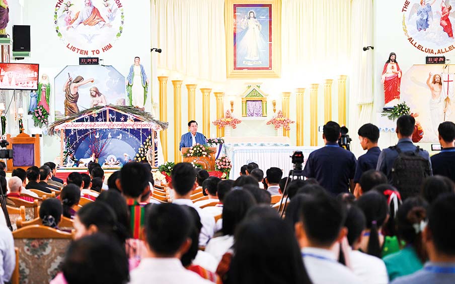 Chairman of the State Administration Council Prime Minister Senior General Min Aung Hlaing and his wife Daw Kyu Kyu Hla paid a visit to the thanksgiving ceremony for Christmas that was held at Saint Michael Cathedral located in No 1 Yanaung Ward, Pyinmana Township, Nay Pyi Taw Council Territory yesterday afternoon, according to the Myanmar News Agency.