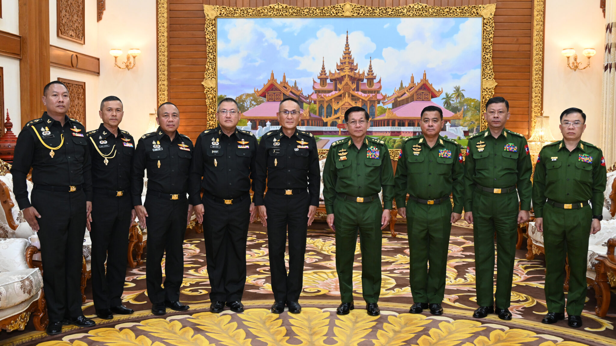 Chairman of the State Administration Council Commander-in-Chief of Defence Services Senior General Min Aung Hlaing received a delegation led by Director of Joint Operations of the Royal Thai Armed Forces Lt-Gen Jakkapong Janpengpen at Bayintnaung Villa in Nay Pyi Taw yesterday morning.