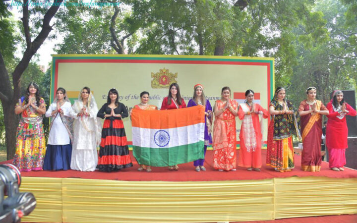 Intending to promote Myanmar-Indian cultural exchange, participants wore Myanmar ethnic costumes and Indian traditional costumes, presenting songs and dances performed by Indian dance groups.