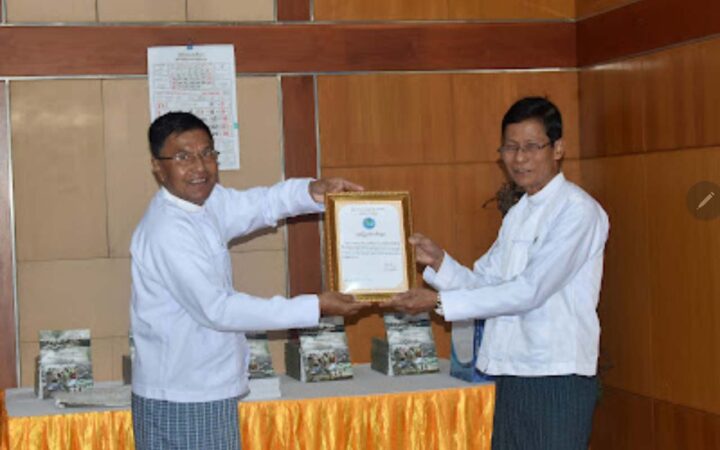 Deputy Minister U Ye Tint, returned a certificate of honour to U Myint Soe. Union Minister U Maung Maung Ohn expressed words of thanks, emphasizing the significance of the donated books for the rehabilitation of Rakhine State. He pledged to order District office of Information and Public Relations Department to keep these valuable records of collaborative efforts.