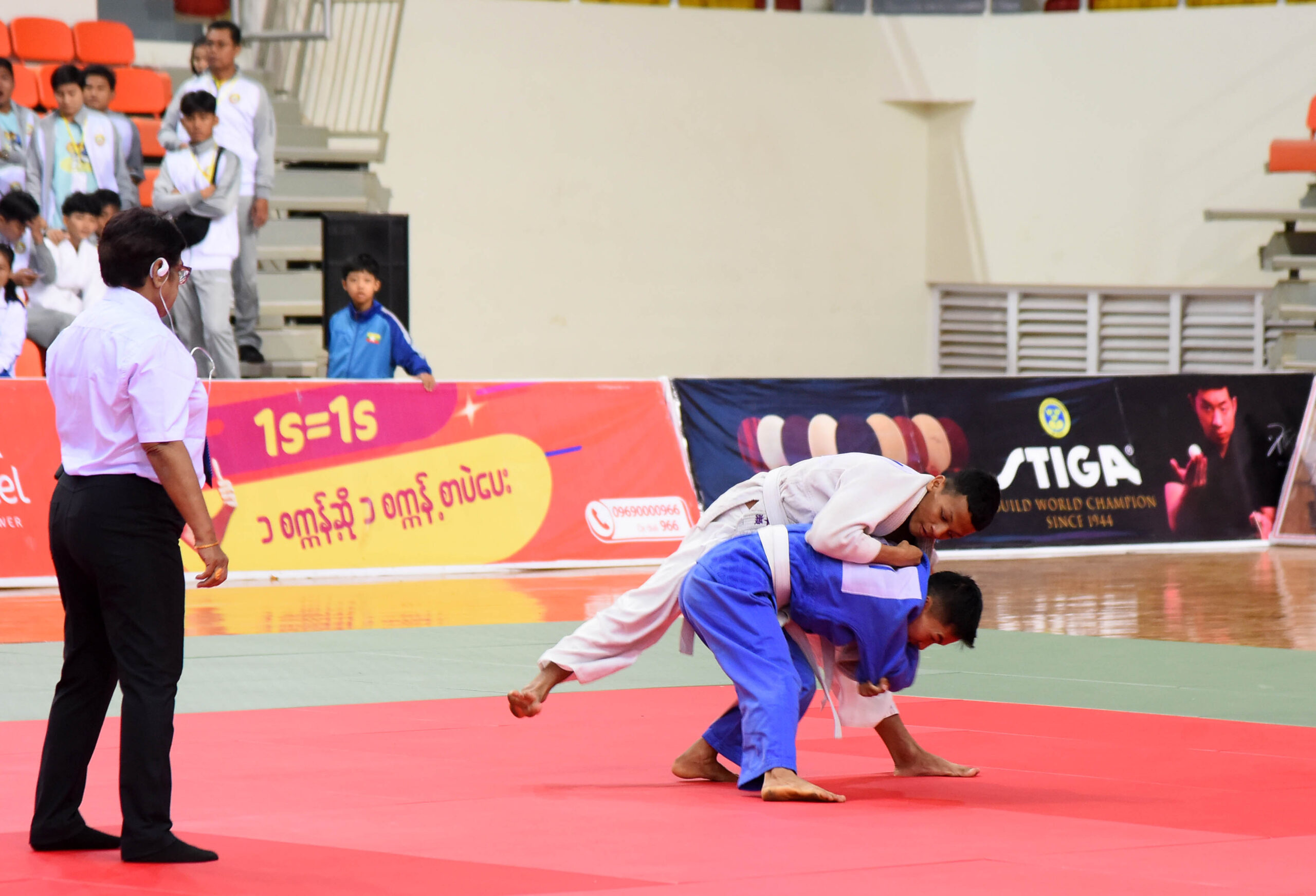 Following the opening speech, athletes recited four sports oaths. Subsequently, SAC members, Union Minister U Min Thein Zan and officials warmly greeted the athletes. They then observed the demonstration of the under-45-kilogramme individual men’s and women’s Judo competition.