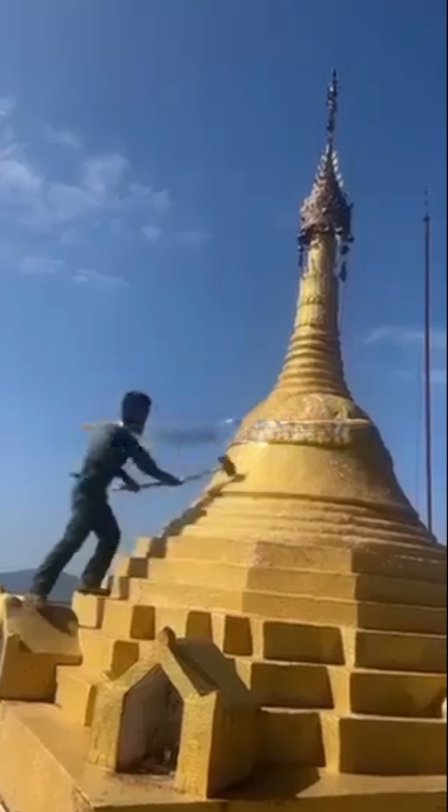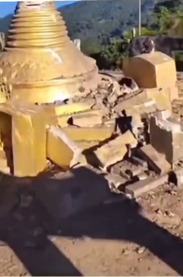 The MNDAA Kokang terrorists destroyed a pagoda on the hill of Sin Oo Kin Hillock (Point-2202), northern part of Siaw Village, Laukkai Township, on 8 January 2024. This pagoda represents Buddha, which is sacred to us Buddhists. This barbaric and despicable incident saddens all of us Buddhists. I am saddened. This action will shock Buddhists from not only Myanmar but from Thailand, Laos, Cambodia, Sri Lanka, India, and China, including Tibet region and Yunnan Province. They also bombed with driverless drones on the monastery in the compound of the Yatawmu pagoda, Muse, Shan State, on 4 December 2023. These are acts of violence against religion by three terrorist groups, MNDAA, TNLA and AA.