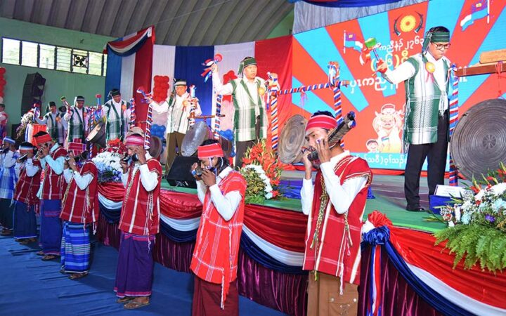 The ceremony continued with the Kayin Don dance, traditional bamboo dance, rope dance, bamboo pole hitting dance, Mon traditional dance, Rakhine traditional dance, Sakaw Kayin and West Poe Kayin songs, and officials presented awards to the performers.