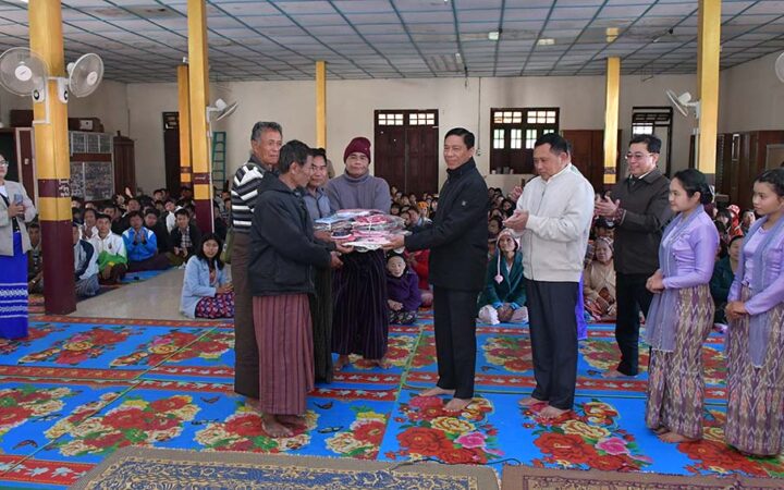 Subsequently, the Union minister and his entourage visited the Yangon Monastery in Nyaungshwe to pay respect and offer alms to the resident monks. Furthermore, they extended greetings to the IDPs housed in temporary shelters at the monastery, offering necessary assistance.