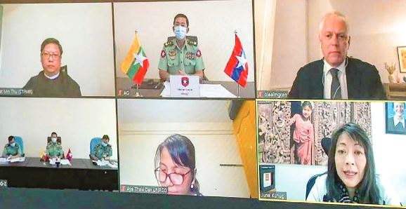 The virtual meeting was attended by Office of the Commander-in-Chief (Army) Let-Gen Myo Zaw Thein and Tatmadaw senior officers, CTFMR co-chairs UN Resident Coordinator for Myanmar Mr Ola Almgren and UNCEF Myanmar Representative Ms June Kunugi and officials.