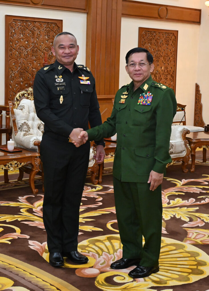 SENIOR General Min Aung Hlaing and General Kittisak Boonprathamchai of the Royal Thai Army Commander-in-Chief Office frankly exchanged views on further cooperation in peace and stability, rule of law, counter-terrorism, and exchange of information at border areas of both countries.