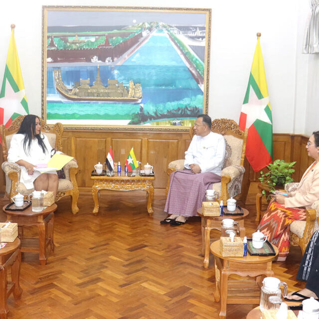 During the meeting, the Union Minister congratulated the Ambassador for being appointed as Ambassador Extraordinary and Plenipotentiary designate of the Arab Republic of Egypt to the Republic of the Union of Myanmar. They cordially exchanged views on measures to boost the bilateral economic cooperation between Myanmar and Egypt. The meeting was also attended by the Deputy Minister and senior officials from the Ministry of Investment and Foreign Economic Relations.