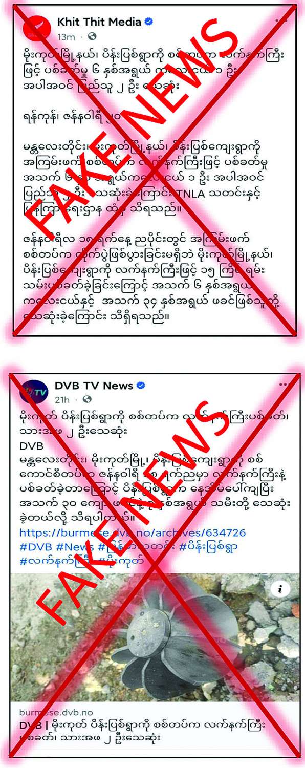 The Khit Thit and DVB media outlets are intentionally disseminating false information, claiming that the Tatmadaw launched artillery attacks on Painpyit village in Mogok Township, Mandalay Region, resulting in the death of two civilians, including a six-year-old child, as reported by TNLA insurgents.