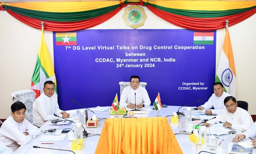 THE 7th DG-Level Virtual Talks on Drug Control Cooperation between CCDAC (Central Committee on Drug Abuse Control) and NCB (Narcotics Control Bureau), India, was organized in Nay Pyi Taw yesterday with the attendance of Police Brig-Gen Win Naing, Joint Secretary of the Central Committee on Drug Abuse Control and Commander of the Drug Enforcement Division.