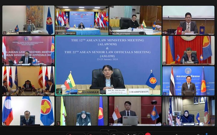 THE 12th ASEAN Law Ministers Meeting (ALAWMM) and the 22nd ASEAN Law Officials Meeting (ASLOM) hosted by Myanmar were held via videoconference from 23 to 25 January 2024. During those two meetings, Union Minister and Attorney-General of the Union Dr Thi Da Oo acted as the chairperson in the 12th ALAWMM and Deputy Minister and Deputy Attorney-General Dr Htain Linn Oo acted as the chairperson of the 22nd ASLOM, respectively.