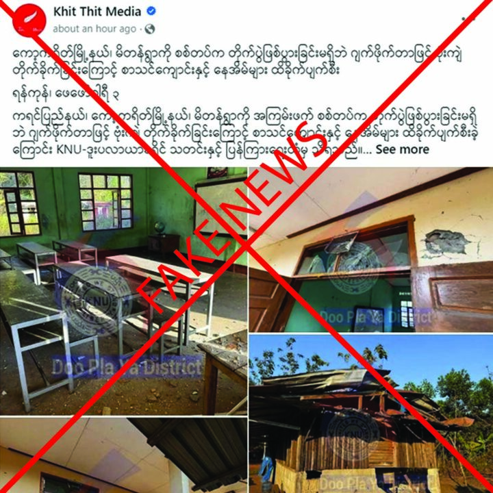 The malicious media are intentionally spreading the misinformation on social media platforms claiming that a school in Mitan village near Kyaikdon Town of Kawkareik Township was shelled by three 500-pound bombs in an air strike, destroying school and residential houses on 1 February.