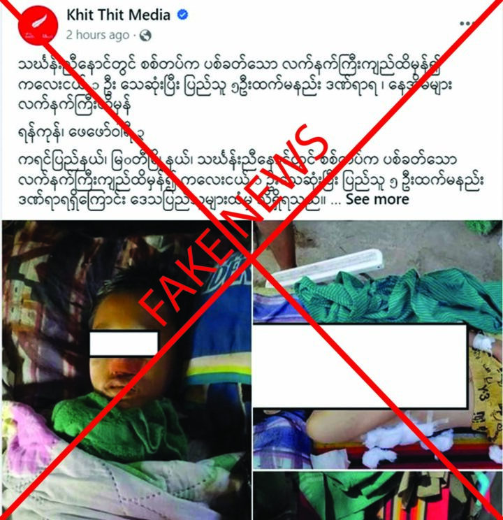 The malicious Khit Thit media deliberately circulates fake news on social media that on 2 February, a child was killed and at least five others were wounded by the explosion of the heavy weapon shelled by the Tatmadaw in a section of Asia Highway between Thingan-Nyinaung tactical operations base and Ywathitgon Village in Myawady Township, Kayin State.