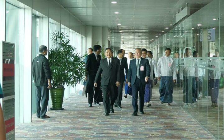 Union Minister U Tin Oo Lwin and party attended a meeting with Shen Yiqin, the State Counsellor of the China, at 9:00 am local time on 2 February, together with leaders of the delegations from the ASEAN member countries, and toured the exhibits displayed at the Fuzhou Strait International Conference and Exhibition Centre Lobby.