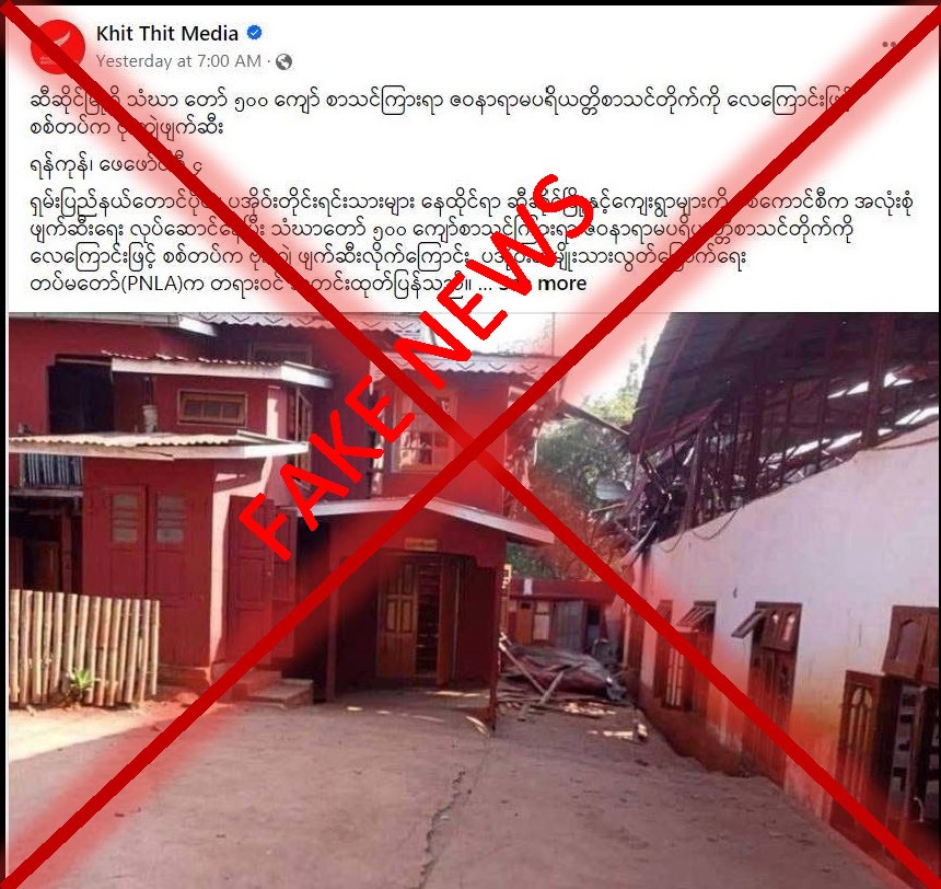 Similarly, Khit Thit media spread misinformation, claiming that the artillery shells and airstrike of Tatmadaw destroyed some buildings of Zawanarama Buddhist learning Centre in Hsihseng Township on 2 February.
