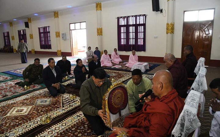 MEMBER of the State Administration Council Deputy Prime Minister and Union Minister for Transport and Communications General Mya Tun Oo donated alms to members of the Sangha from MyoU monastery in Haka on 21 February as a gesture of honouring the 76th Anniversary of Chin National Day.