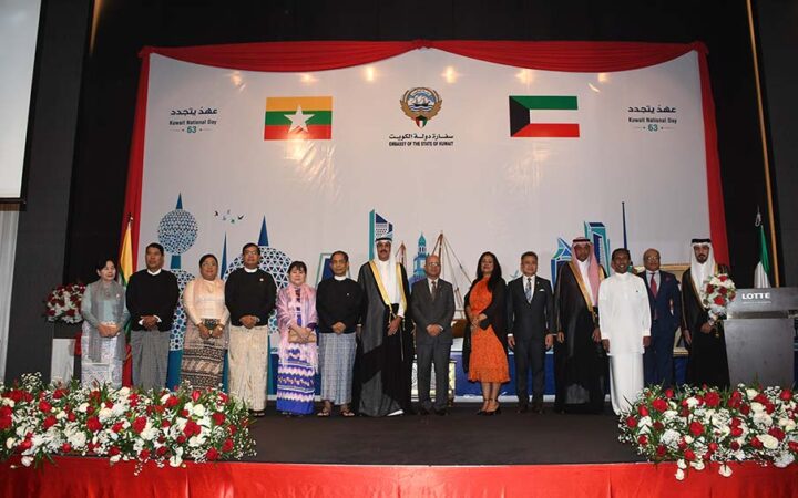 The ceremony was opened with national anthems of Myanmar and Kuwait. Kuwaiti Ambassador Mr Mubarak Muhanna Eissa Aladwani extended greetings. The Union Minister and the Kuwaiti Ambassador cut the commemorative cake. They all had the dinner hosted by the Kuwaiti Ambassador.
