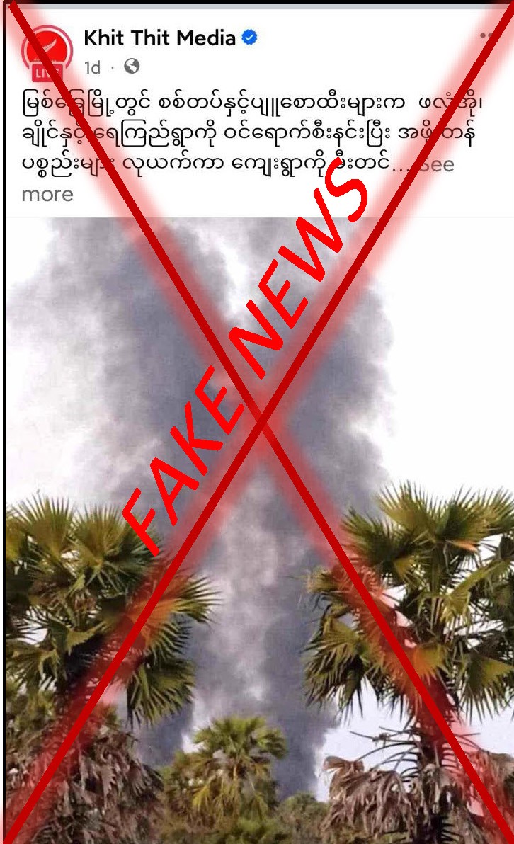 THE malicious media outlet, Khit Thit, intentionally spread false news to discredit the security forces, claiming that the combined security forces raided PhalangO, Chaing and Yaykyi villages in Myitchay of Magway Region and took the precious pieces of jewellery and also torched the villages on 27 February.