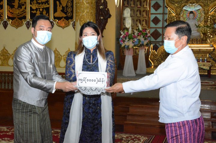 Union Minister for Religious Affairs and Culture Thura U Aung Ko received the donations and handed back certificates of honour.