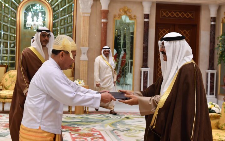 U Chan Aye, Ambassador Extraordinary and Plenipotentiary of the Republic of the Union of Myanmar to the State of Kuwait, presented his Credentials to His Highness Sheikh Mishal Al-Ahmad Al-Jaber Al-Sabah, Amir of the State of Kuwait, on 10 March 2024 at the Bayan Palace in Kuwait.