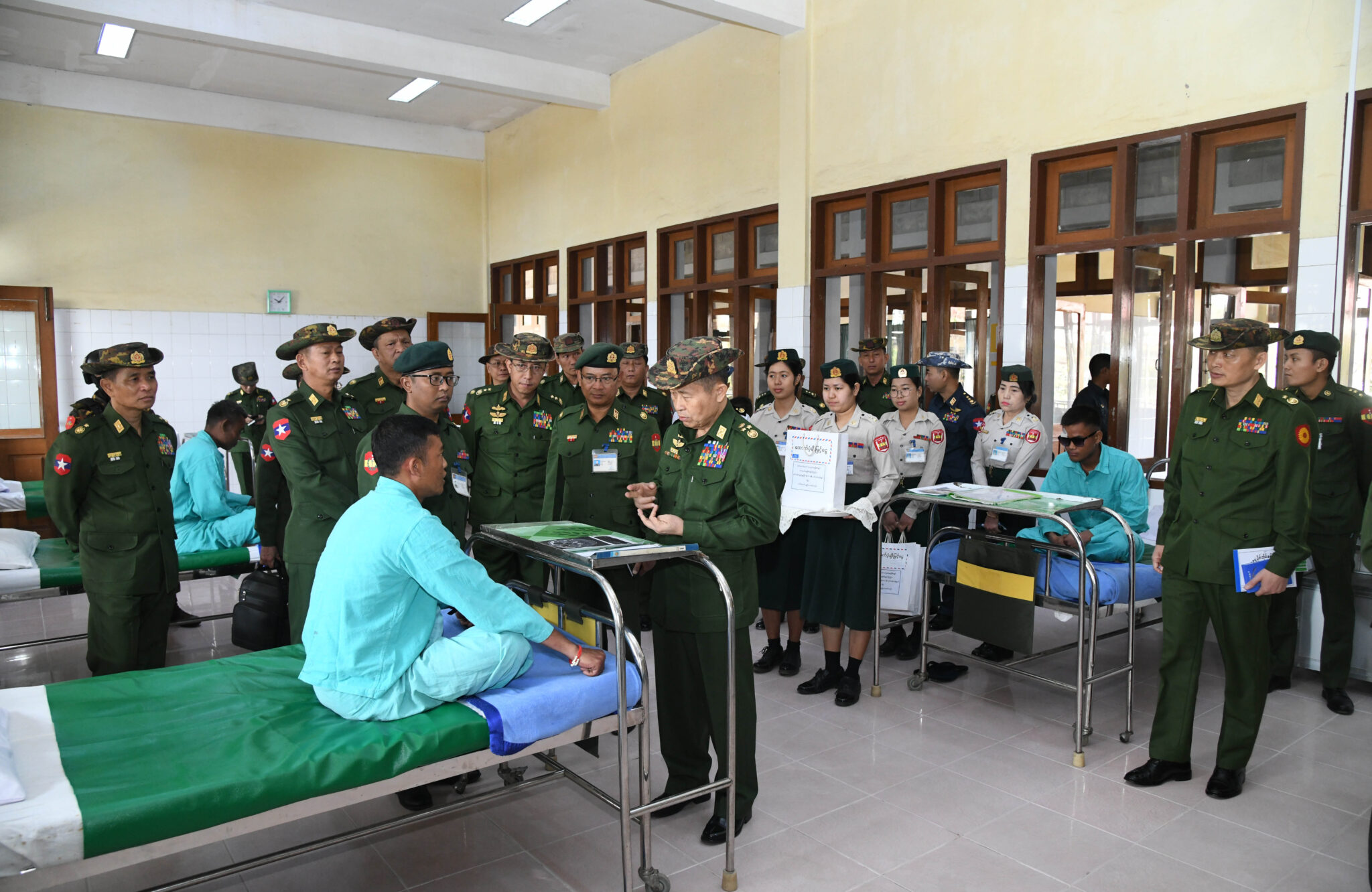 VICE-CHAIRMAN of the State Administration Council Deputy Commander-in-Chief of Defence Services Commander-in-Chief (Army) Vice-Senior General Soe Win comforted officers, other ranks and families, members of Myanmar Police Force and people’s militia (local) members receiving medical treatment at the military hospital in Aungban of Shan State (South) yesterday morning.