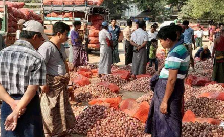 Yangon’s Bayintnaung market saw an influx of 240,000 visses of onion on 25 March, 180,000 visses on 26 March and 300,000 visses on 28 March, respectively, totalling 720,000 visses in the past three days.