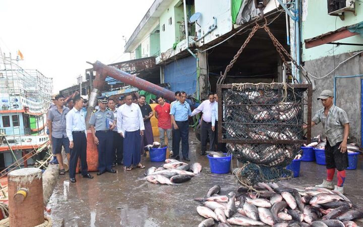 Additionally, the Union minister and officials conducted an inspection at Aung Mingala Port in Kyimyindine Township to look into the shipping conditions of surplus fish from Maubin and Twantay townships for export.