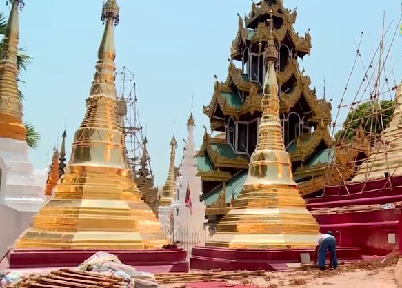 The trustee explained: "Before gilding the pagoda, it is customary to apply gold leaves to the surrounding stupas on the terrace and the Naungdawgyi Stupa one year in advance. Additionally, we will renovate heat-resistant tiles on the pagoda platform in two phases."