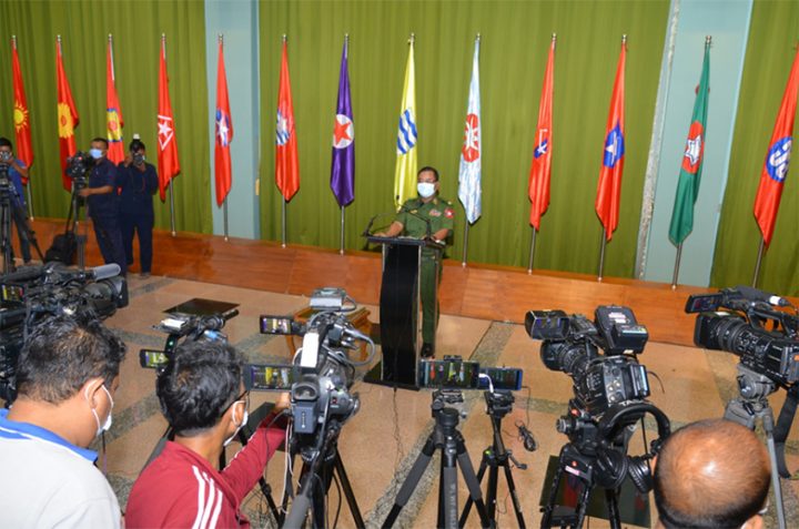 Brigadier-General Zaw Min Tun explained the Tatmadaw’s donation of medical supplies and food during the COVID-19 pandemic, measures to conduct COVID-19 prevention, control and treatment activities effectively, suspension of military activities from 1 to 30 September, except in the areas of groups declared by the government as terrorist groups, armed clashes in ceasefire areas from 1 January to 1 September, seizures of K761billion worth of drugs including over 229.6 million stimulant tablets, 8,352kg of ICE during this period, competition of Tatmadaw’s tank team in International Army Games-2020 held in Russia and the first part of Bumi Phassa Mudra Sitting Buddha Image to be convoyed to Nay Pyi Taw.