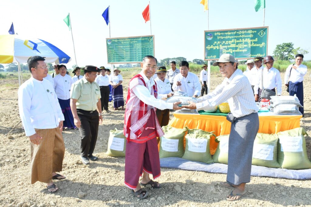 State Administration Council Member Mahn Nyein Maung, accompanied by Ayeyawady Region Chief Minister U Tin Maung Win and relevant officials, participated in the 2024-2025 handover ceremony and planting of green manure (Crotalaria juncea) in 11 acres in Zeephyu village of Pantanaw township of Maubin district yesterday.