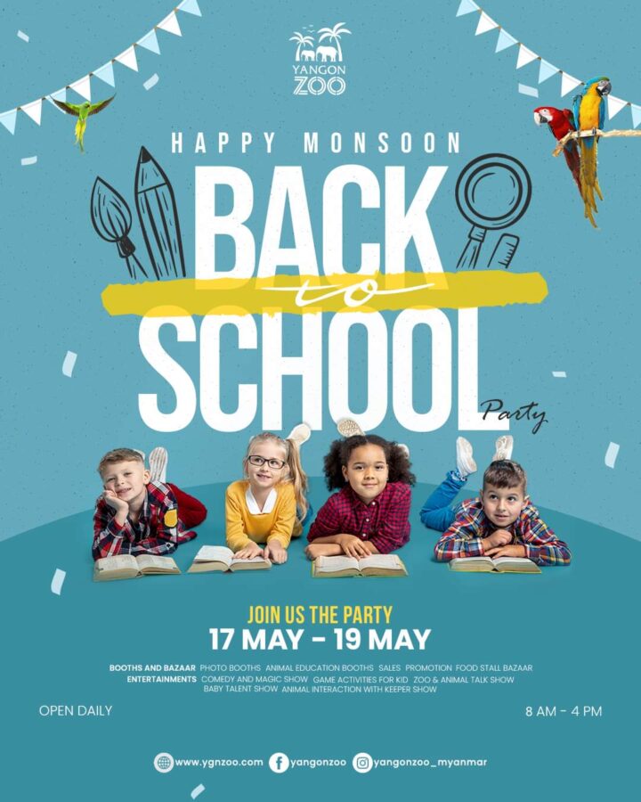 A three-day festival of Happy Monsoon and Back to School will be held at Yangon Zoological Gardens.