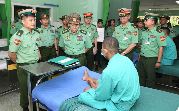 Vice-Chairman of the State Administration Council Deputy Commander-in-Chief of Defence Services Commander-in-Chief (Army) Vice-Senior General Soe Win comforted Tatmadaw members and families receiving medical treatment at Defence Services Orthopaedic Hospital (500-bed) in Mingaladon Township of Yangon Region yesterday afternoon.