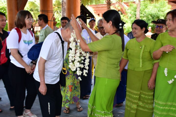 The Chinese visitors on the familiarization trip were greeted by U Saw Win Tun, the chairperson of the NyaungU district administration body, along with team members. They were also welcomed by U Nan Tint, the chairperson of NyaungU township administration body, Deputy Director U Win Aung of the Directorate of Hotels and Tourism (Bagan branch), along with staff members, U Zaw Weik from the Myanmar Hoteliers Association (Bagan zone), along with other members, at the Heritage Bagan Hotel, where they enjoyed traditional Myanmar dance performances.