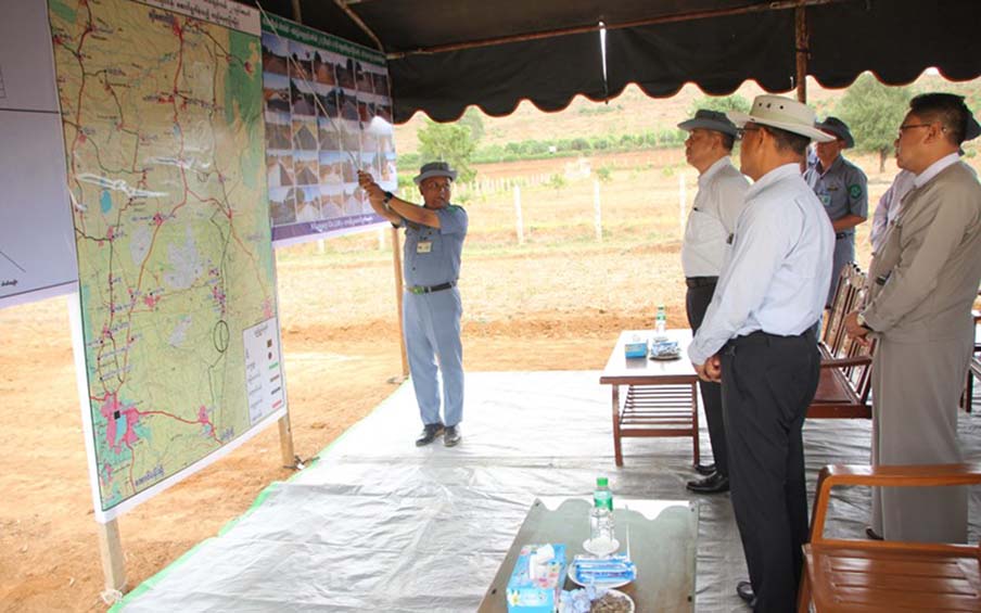 The inspection also included observing an agricultural pilot project using solar-powered water pumping systems and inspecting motor road asphalt resurfacing work in Pindaya Township.