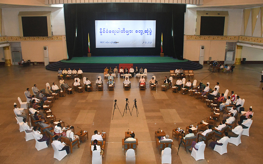 The political parties organized a coordination meeting on sanctions on Myanmar at the Myanmar Convention Centre (MCC) in Yangon yesterday.