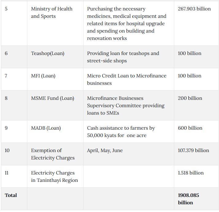 The government established the K100 billion COVID-19 Fund to assist the affected hotels and tourism industry, CMP enterprises and SMEs in April 2020. In continuation of the measures, a second tranche of K100 billion will be provided by the State to affected enterprises in the agriculture, livestock, and fisheries and food processing sectors, agencies dealing with labour recruitment, vocational schools as well as export-oriented and import substitution industries. The meeting discussed matters relating to ways and means to expedite the process for the disbursement of loans from the COVID-19 fund.