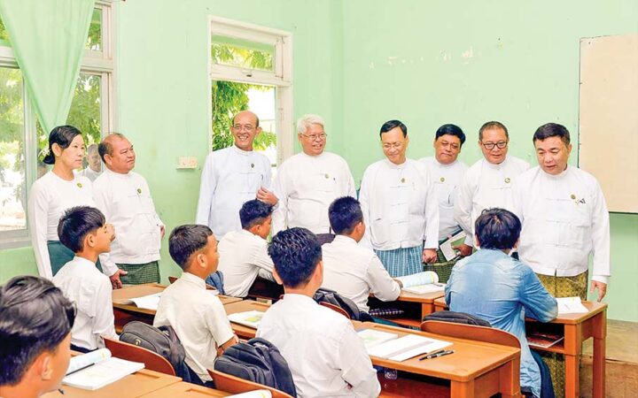 The Union minister visited Zabuthiri Township No 14 Basic Education High School, Pobbathiri Township No 3 Basic Education High School, and Ottarathiri Township No 12 Basic Education High School in Nay Pyi Taw. He observed students studying peacefully, offered encouraging words, and greeted students and teachers cordially.