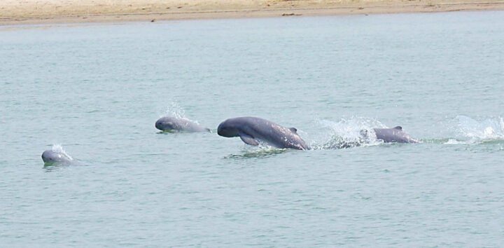 The Irrawaddy dolphins are grazing in the Mandalay-Kyaukmyaung area, and they are observed and recorded three times a month.