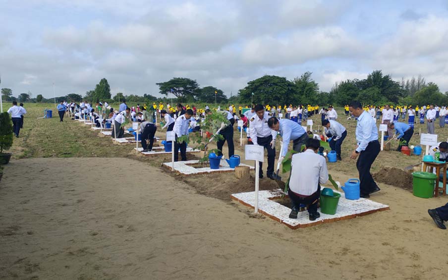 During the event, Deputy Prime Minister Union Minister for Transport and Communications General Mya Tun Oo and his wife, deputy ministers and officials planted a total of 1,000 shade trees with those attending the ceremony and encouraged the employees.