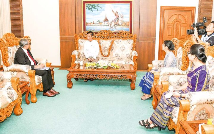 DEPUTY Minister for Foreign Affairs U Lwin Oo received Mr Sajjad Mohammad Sajid, Head of Office of the United Nations Office for the Coordination of Humanitarian Affairs (UNOCHA), yesterday at the Ministry of Foreign Affairs in Nay Pyi Taw.