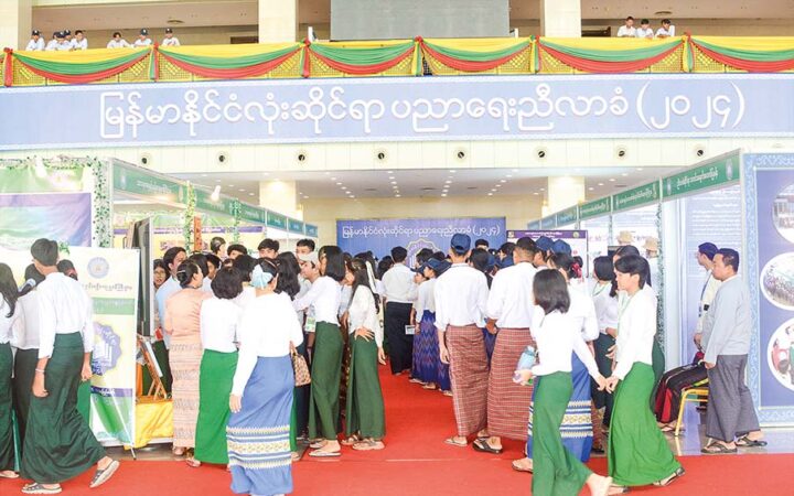 Teachers and students from nursing schools, Agricultural Institute (Pyinmana), Government Technological Institute (Nay Pyi Taw) and basic education schools visited the education booths of the conference.