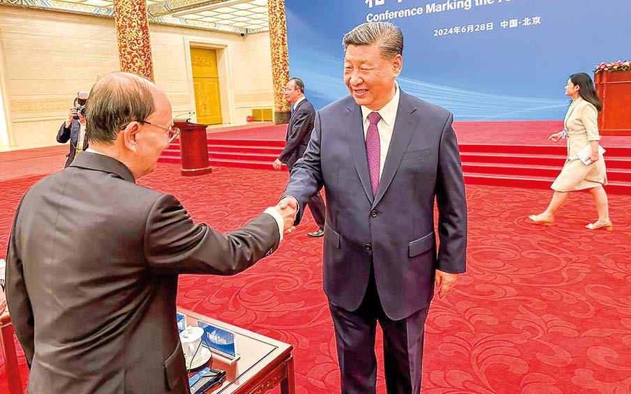 U THEIN SEIN, former president of the Republic of the Union of Myanmar and Myanmar Delegation, attended the opening ceremony of the 70th Anniversary of the Five Principles of Peaceful Coexistence held at 10 am on 28 June 2024 at Great Hall of the People in Beijing, China. President of the People’s Republic of China Mr Xi Jinping delivered a speech at the opening ceremony and highlighted the core principles and the essence of peaceful coexistence and critical changes, an indication to establish a community with peace and tranquillity and a shared future for humankind during the previous 70 years.
