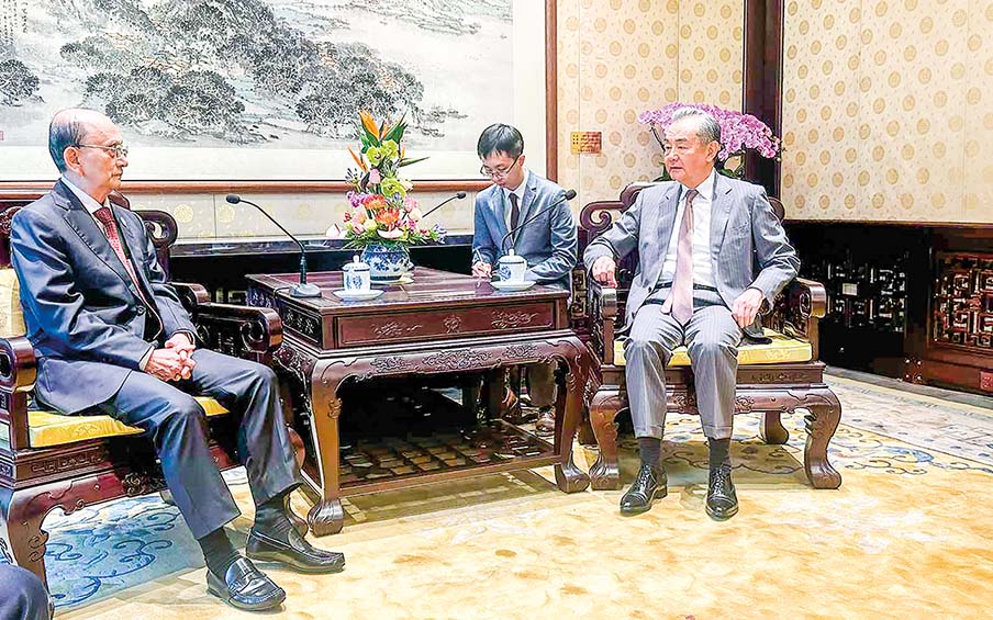 In the afternoon, former President U Thein Sein received Mr Wang Yi, Member of the Political Bureau of the CPC Central Committee, Director of the Office of the Central Commission for Foreign Affairs, and Minister of Foreign Affairs of the People’s Republic of China at the Diao Yutai State Guest House in Beijing. During the meeting, they exchanged views on the existing friendly relations and cooperation between Myanmar and China, and recent development of Myanmar.