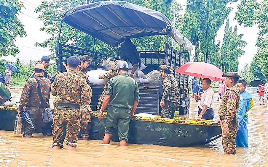 Regional Tatmadaw members, the Myanmar Police Force, the Fire Brigade and departmental staff evacuated the residents and provided the recuse work. Relevant officers of the Northern Command inspected recuse processes and provided foodstuffs to flood victims.
