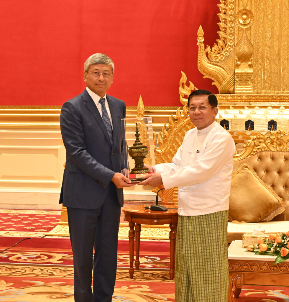 Chairman of the State Administration Council Prime Minister Senior General Min Aung Hlaing received Mr Chen Hai, Ambassador of the People’s Republic of China to Myanmar, who has completed his tour of duty, at the Credentials Halls of the Office of the State Administration Council Chairman in Nay Pyi Taw yesterday morning.