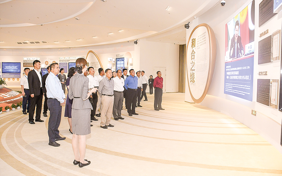 On arrival at the Pearl of SCO International Expo Centre, officials from the centre welcomed the Vice-Senior General and party. Then, they observed the centre and member of SCO Development Zone Chinese Communist Party Work Committee Ms Fu Zhong Hua, and officials explained the data of the centre, investment under the market-oriented system and culture, business and trade exhibition sites of SCO member states.