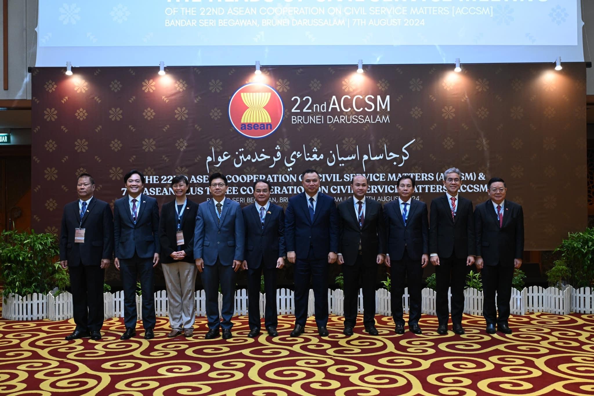 During the meetings, the Heads of Civil Service discussed matters regarding civil service affairs. They confirmed the implementations of the individual countries under the ACCSM Work Plan (2021-2025) and ACCSM Plus Three Work Plan (2021-2025), reviewed the recommendations and decisions concerned with ACCSM and other related meetings, discussed the ASEAN statement proposed by Brunei Darussalam “Strengthening Government Strategies on Mental Health and Well-Being Towards Achieving WorkLife Balance (WLB) in Public Sector”, submitted the activities for ACCSM Work Plan (2026-2030). Later, the ceremony for the handover of the alternate chairmanship of the 23rd ACCSM to the Kingdom of Cambodia was conducted, and the Head concerned reported its preparations for the ACCSM and other related meetings during its term (2025-2026).