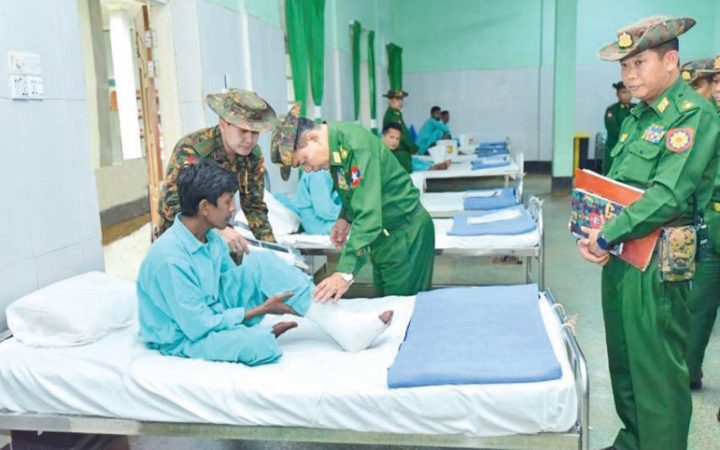 Chief of the General Staff (Army, Navy, and Air) General Maung Maung Aye visited Tatmadaw members wounded in the line of duty at the local Tatmadaw Hospital in Kholam, Shan State (South), yesterday.