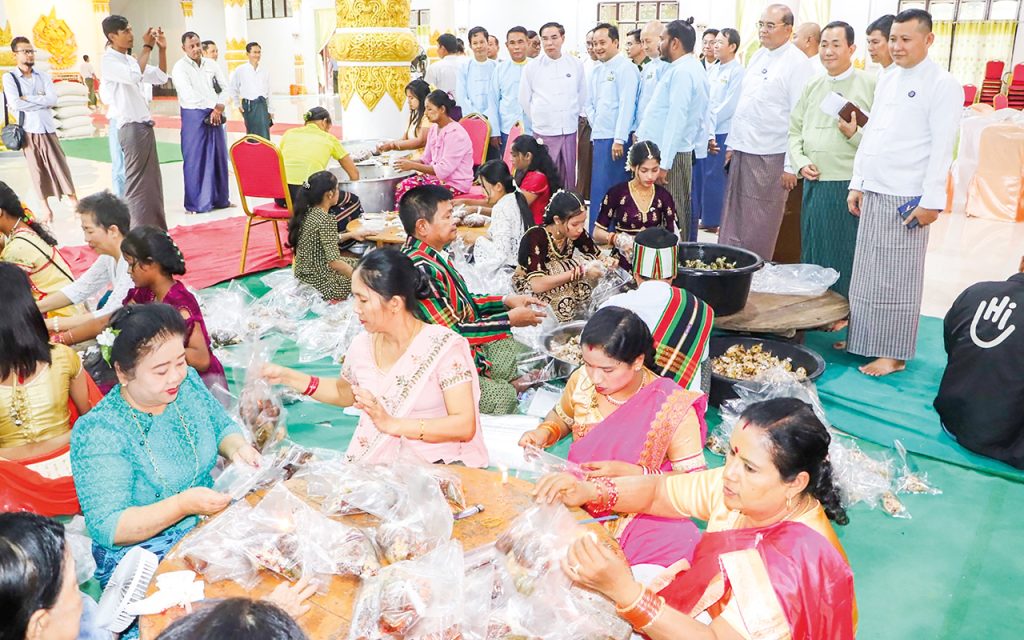 Bago Region Chief Minister U Myo Swe Win, along with regional government members, expressed their support for residents of Bago Region and members of the Interfaith Dialogue Group who packed the food items with goodwill and compassion for the frontline forces.
