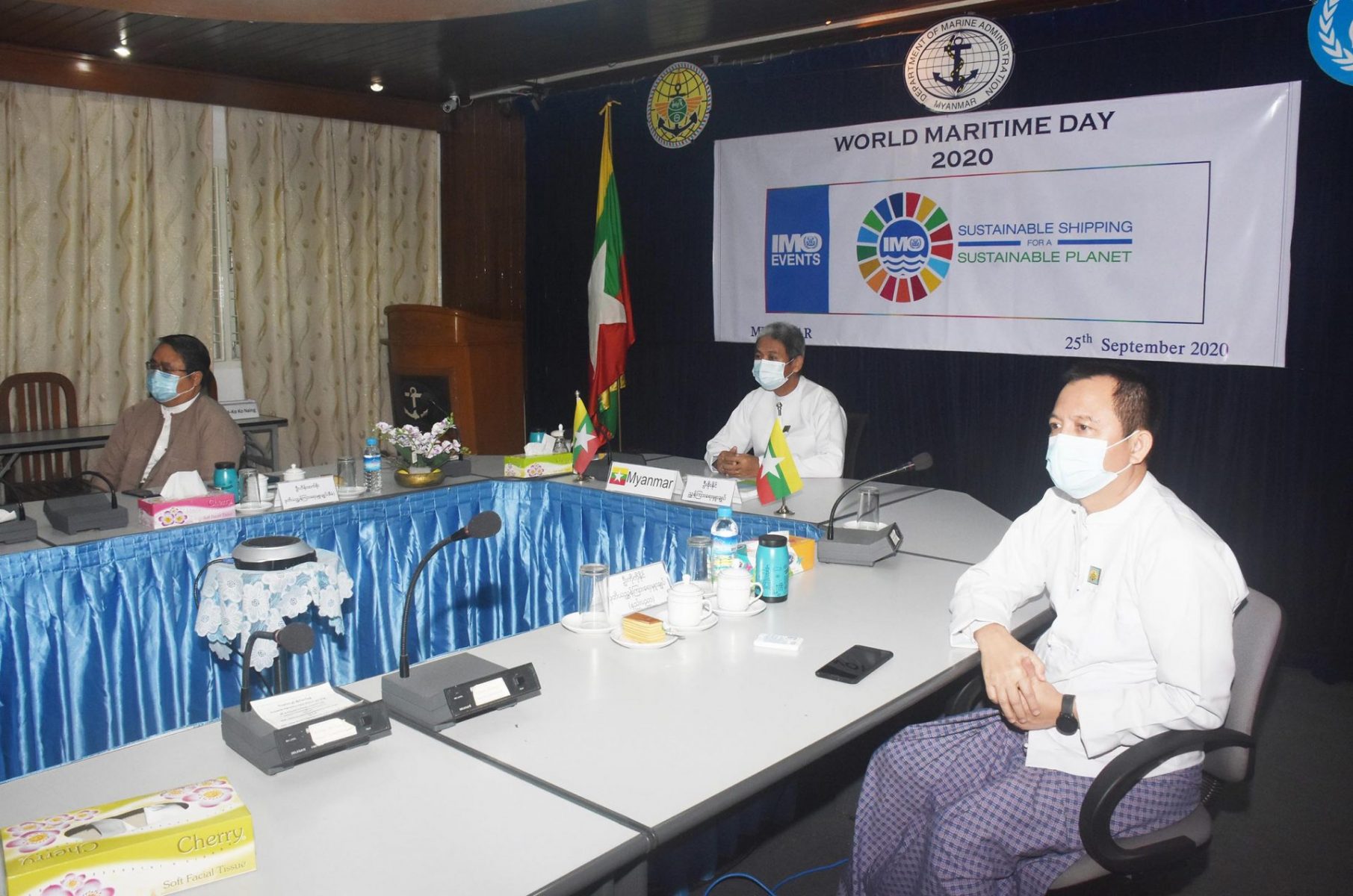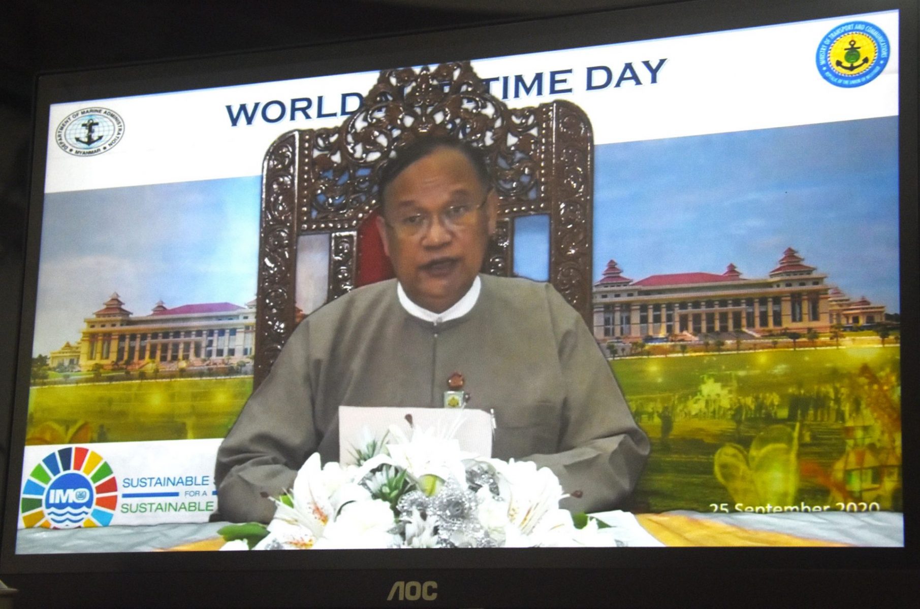 UNION MINISTER for Transport and Communications U Thant Sin Maung delivered a speech at the World Maritime Day online event yesterday morning.