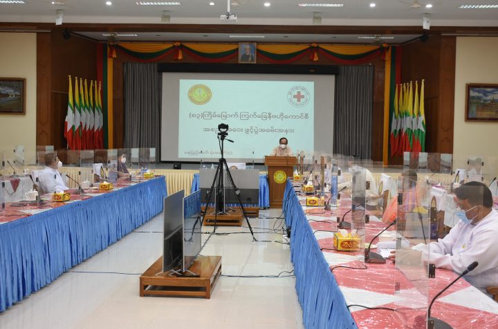 Recently, Myanmar has experienced a sharp increase in COVID-19 cases and related deaths. The Union Minister said he wanted Red Cross members to systematically participate more in COVID-19 response efforts supervised by the Ministry of Health and Sports. He called on Red Cross members to hold videoconferences to effectively collaborate in COVID-19 response efforts.